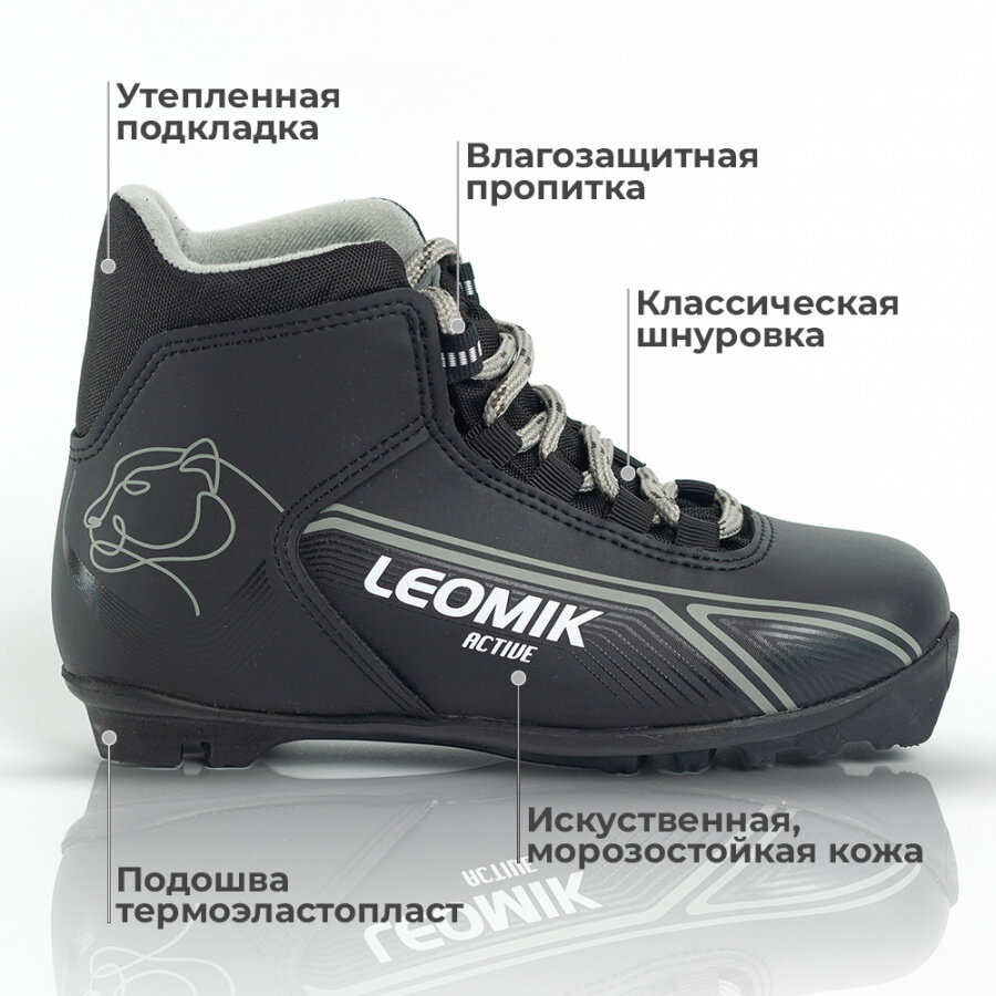 Ботинки лыжные детские Leomik Active черные размер 35 для беговых прогулочных лыж крепление NNN мм информация: