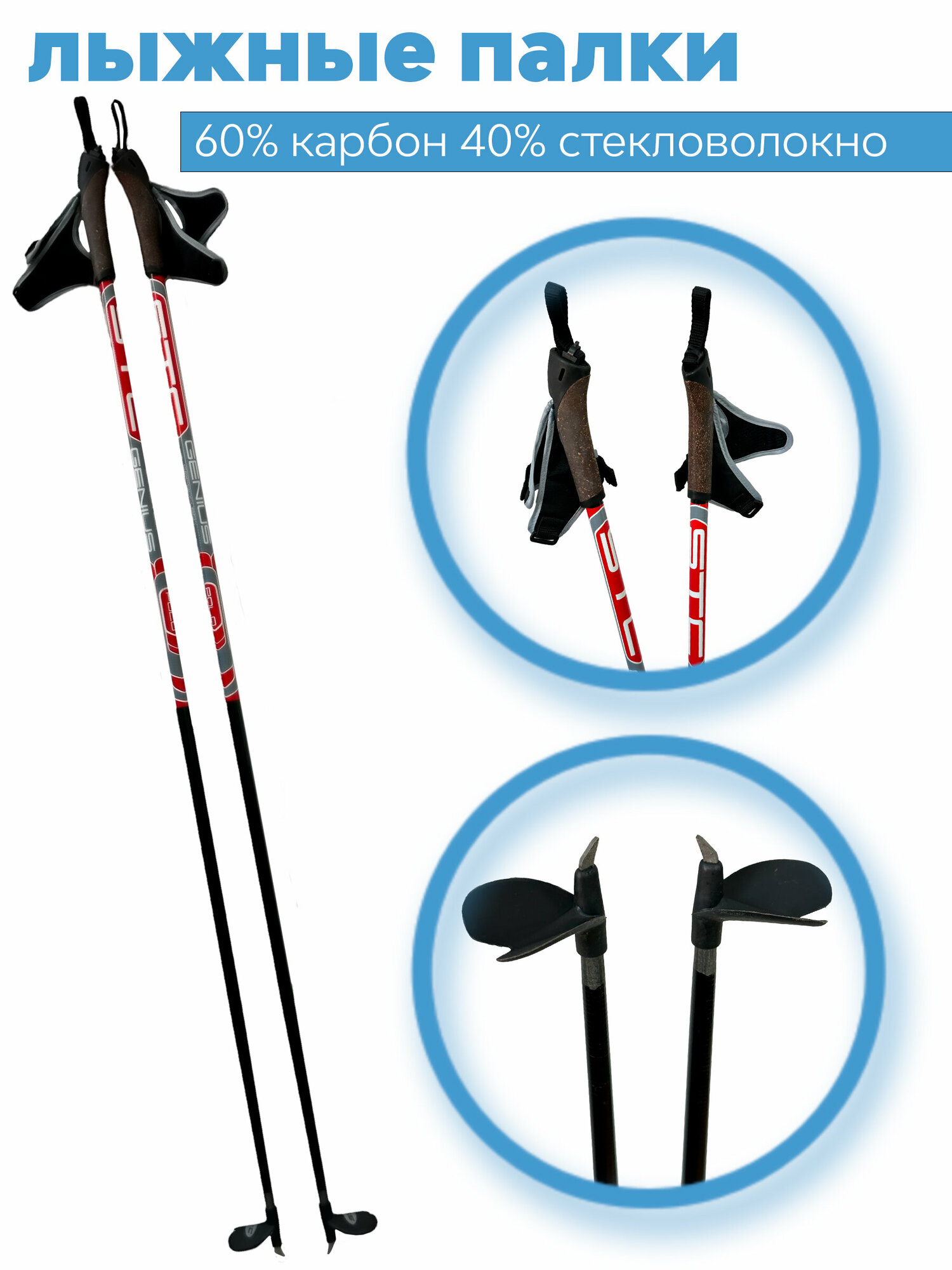 Лыжные палки STC Polo Genius 60% карбон, 125см информация: