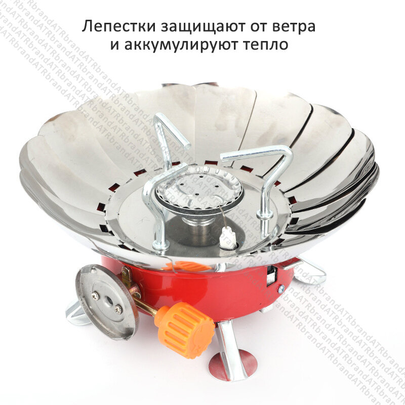 Туристическая газовая / походная плитка круглая, пьезоподжиг, чехол информация:
