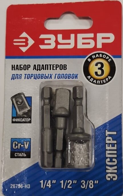 Отзывы на Адаптер с биты на головку 1/2,1/4,3/8" ЗУБР (фиксатор-шарик) к-т 3шт.