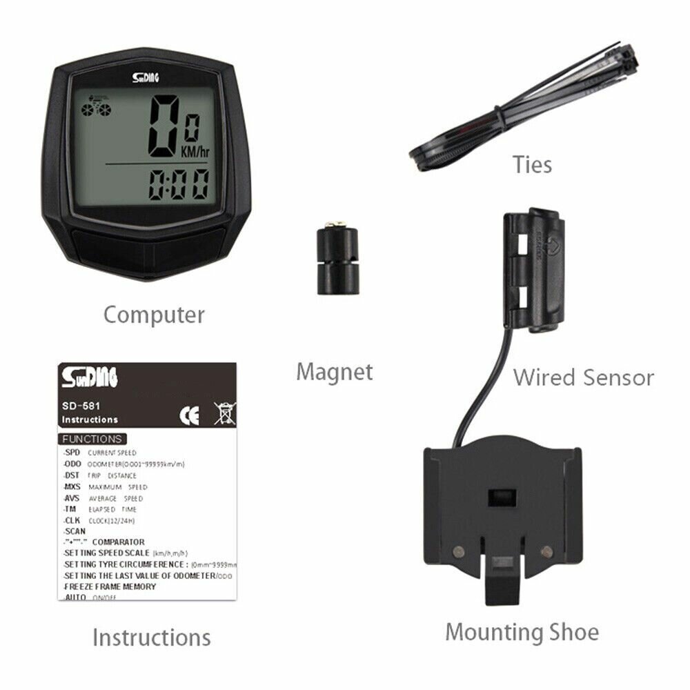 10 цен на Велокомпьютер SUNDinG 15 функций, проводной SD-548B, Спидометр велосипедный
