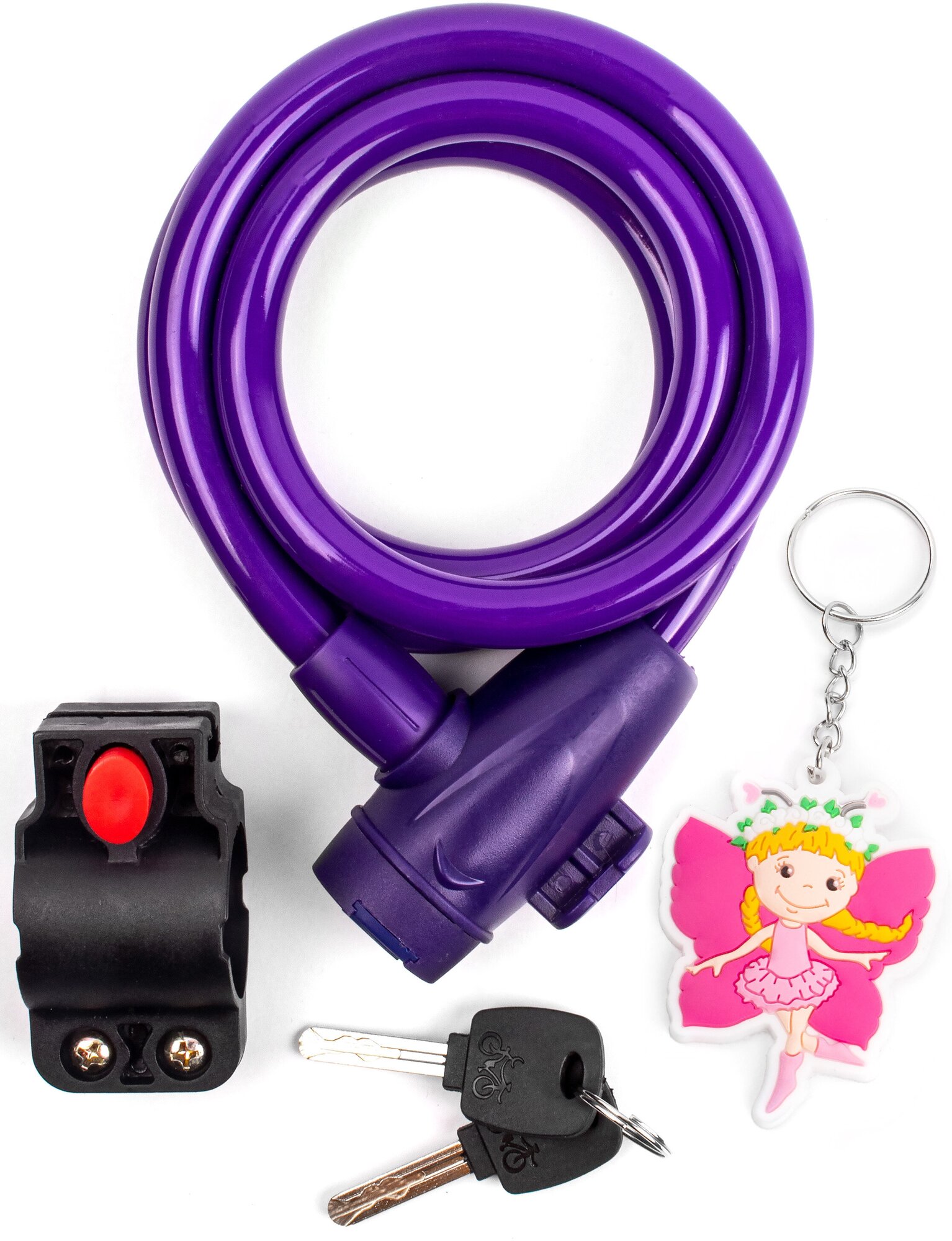VS 561 Milla. Замок велосипедный c брелоком 12*1200мм, с защитой от влаги и креплением, фиолетовый.