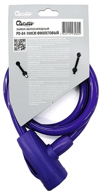 Замок Велосипедный, тросовый, длина 100 см 11,5 мм, 2 перфоключа в комплекте Фиолет информация: