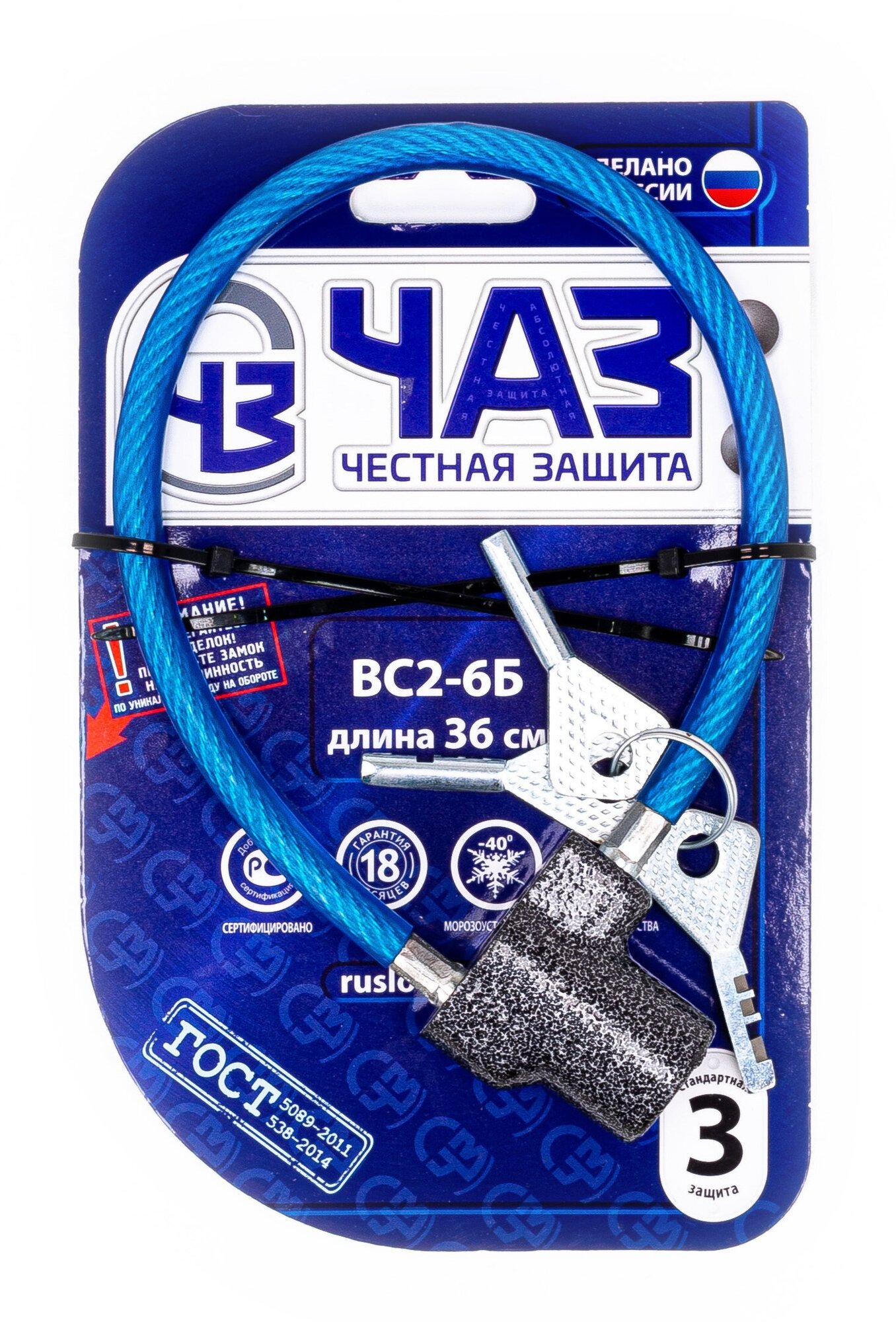 Замок навесной"Чебоксары" ВС 2- 6Б, с тросом ЧАЗ 2617468 .