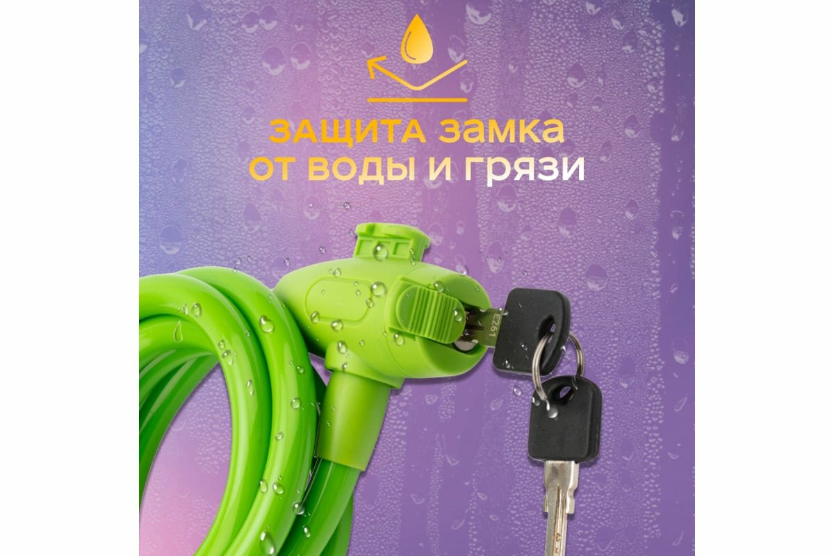 Тросовый замок взломостойкий для велосипедов и колясок с ключом 150 см зеленый четыре сезона 1 шт арт. 79-0313