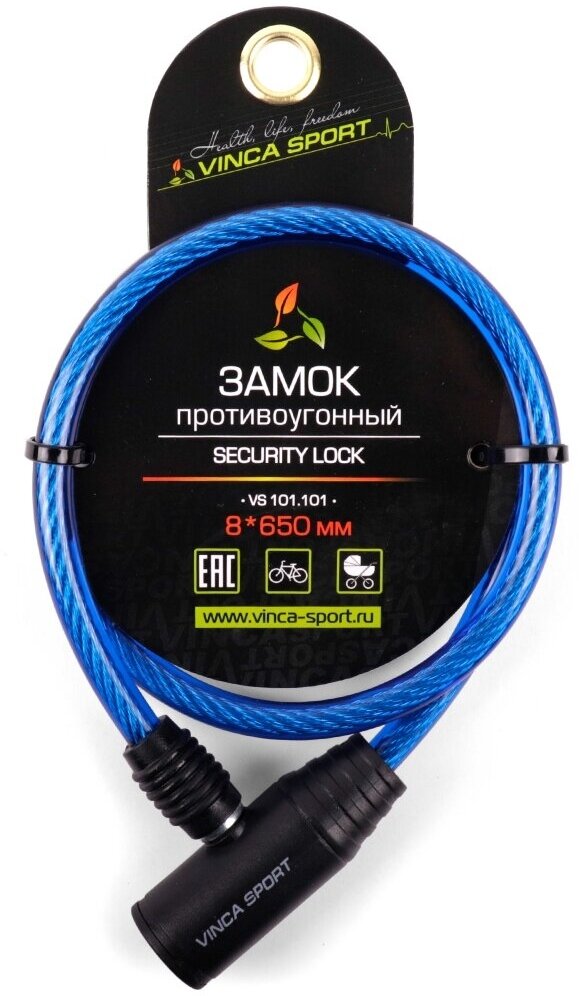 VS 101.101 blue. Замок велосипедный 8*650мм, синий тросик. инд. уп. Vinca Sport 394 ₽