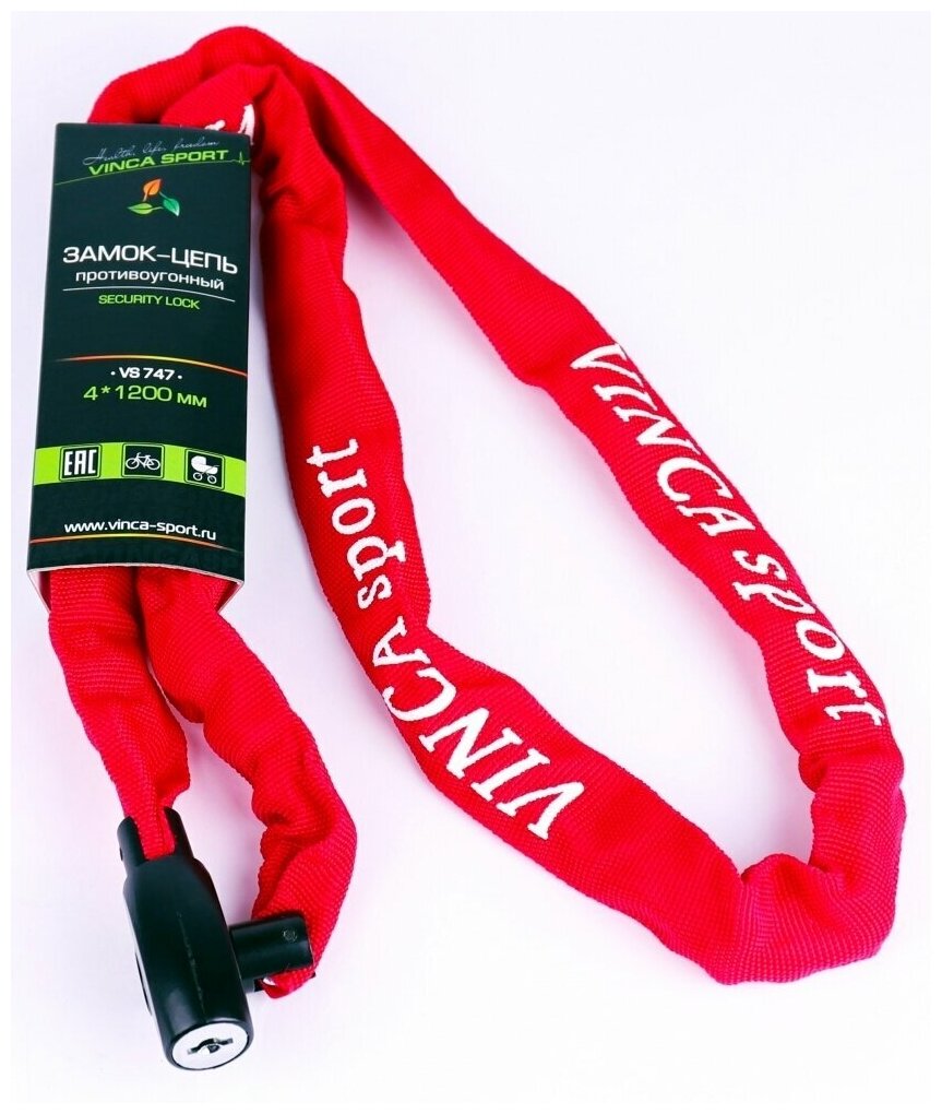 VS 747 green. Замок велосипедный - цепь 4*1200мм, черная оплетка. инд.уп. Vinca Sport 801 ₽