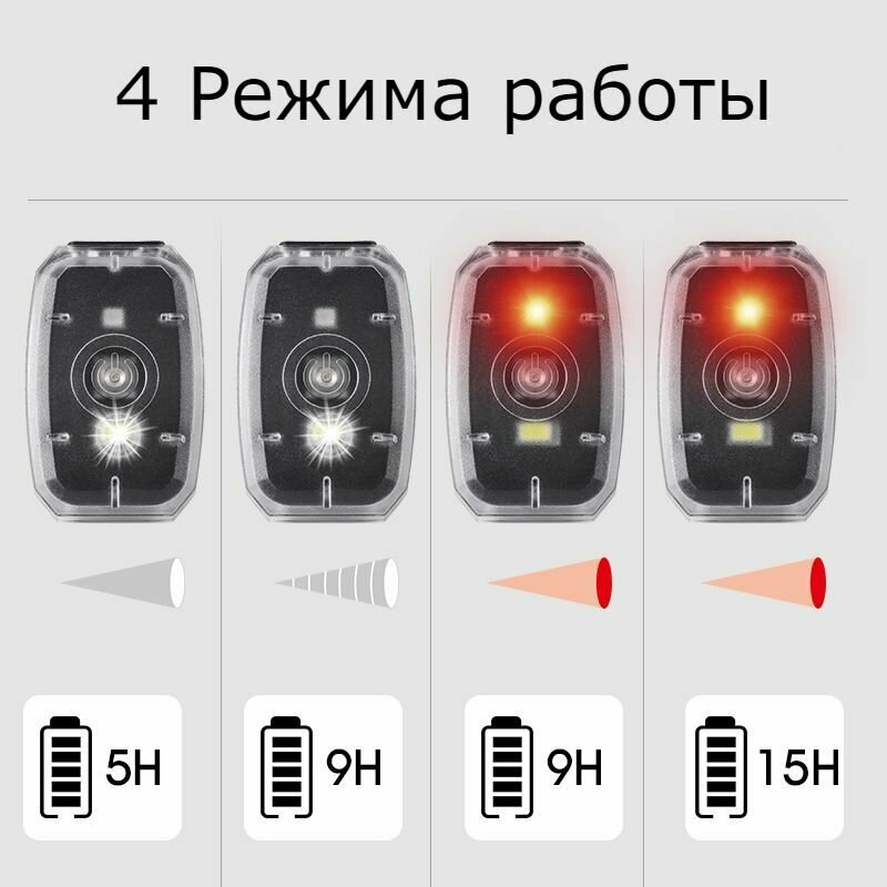 | Место крепления | на одежду / на подседельный штырь / на руль / на рюкзак / на шлем |