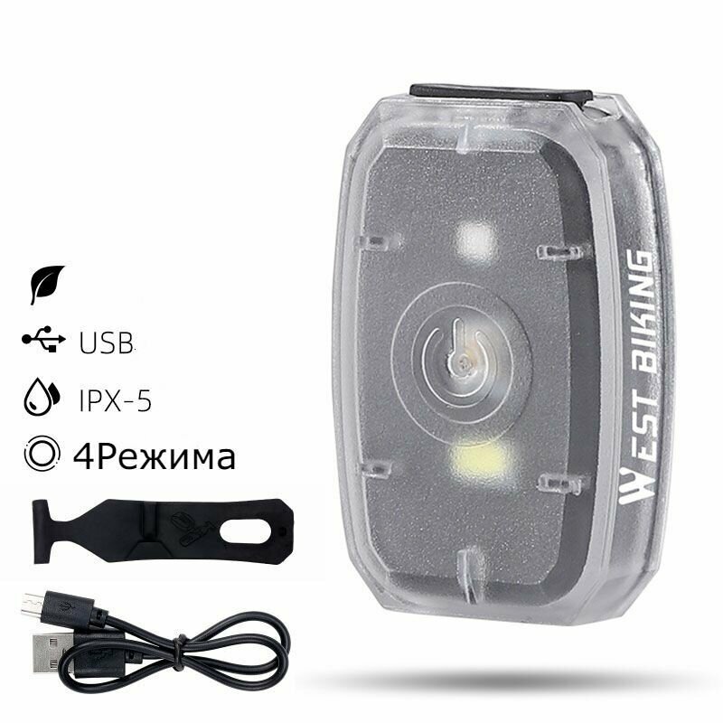 Задний фонарь WEST BIKING 9 режимов, USB зарядка