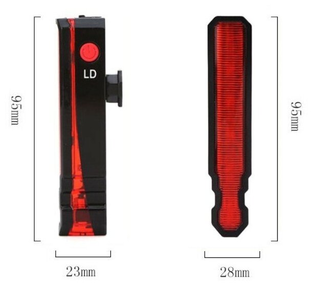| Дополнительная информация | подробная комплектация: складной лазерный велосипедный задний фонарь, USB-кабель, ремешок; вес: 43.5 г |