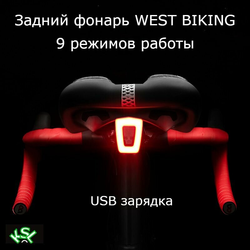 Задний фонарь WEST BIKING 9 режимов, USB зарядка