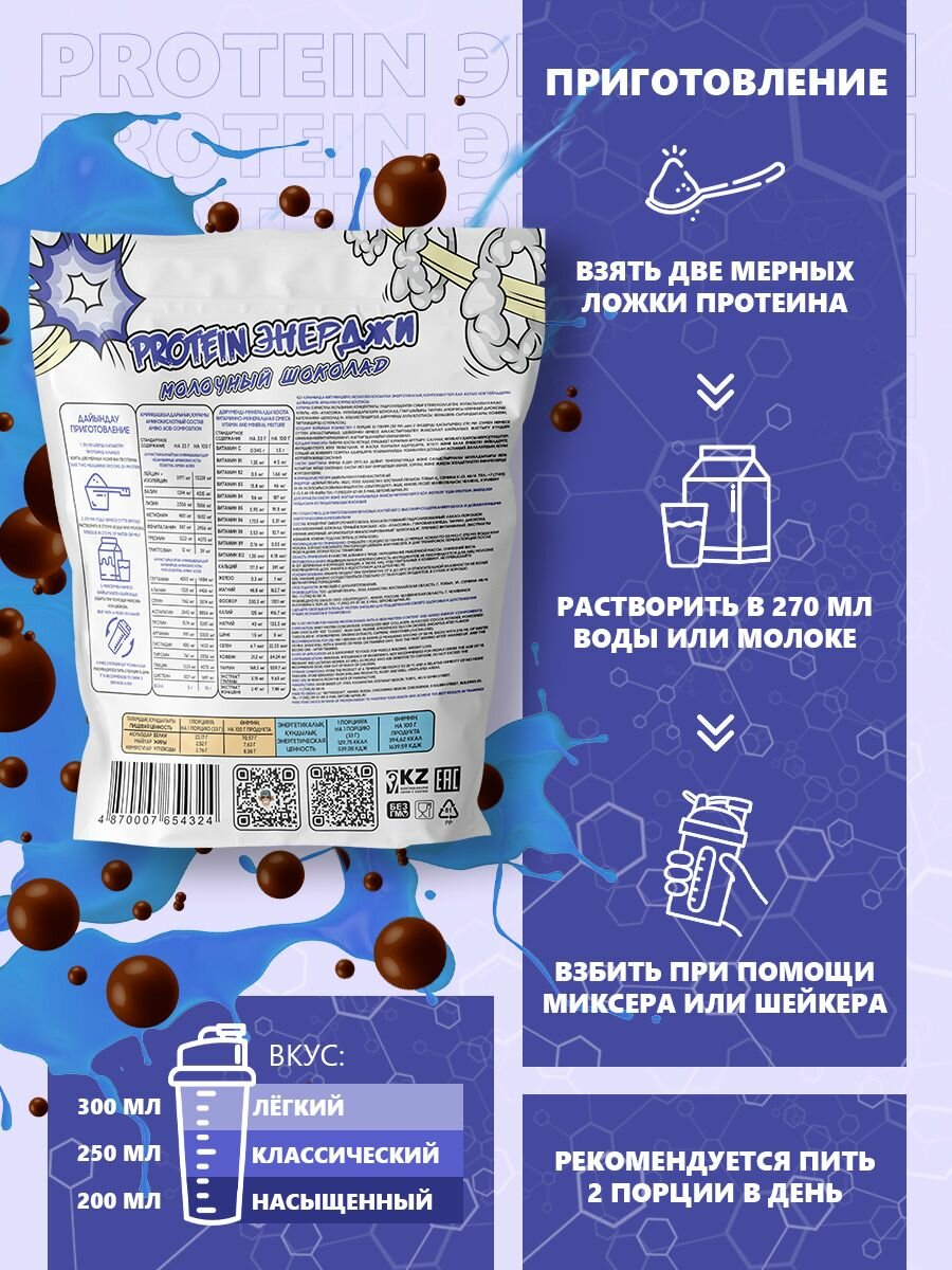Сывороточный протеин PROTEIN энерджи Молочный Шоколад 800г 24 порции информация: