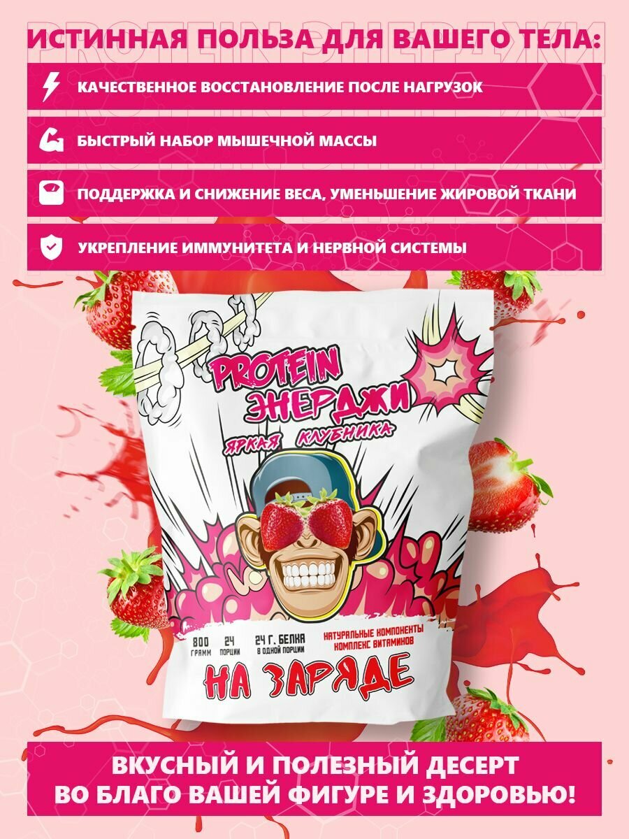 10 цен на Сывороточный протеин PROTEIN энерджи Яркая Клубника 800г 24 порции