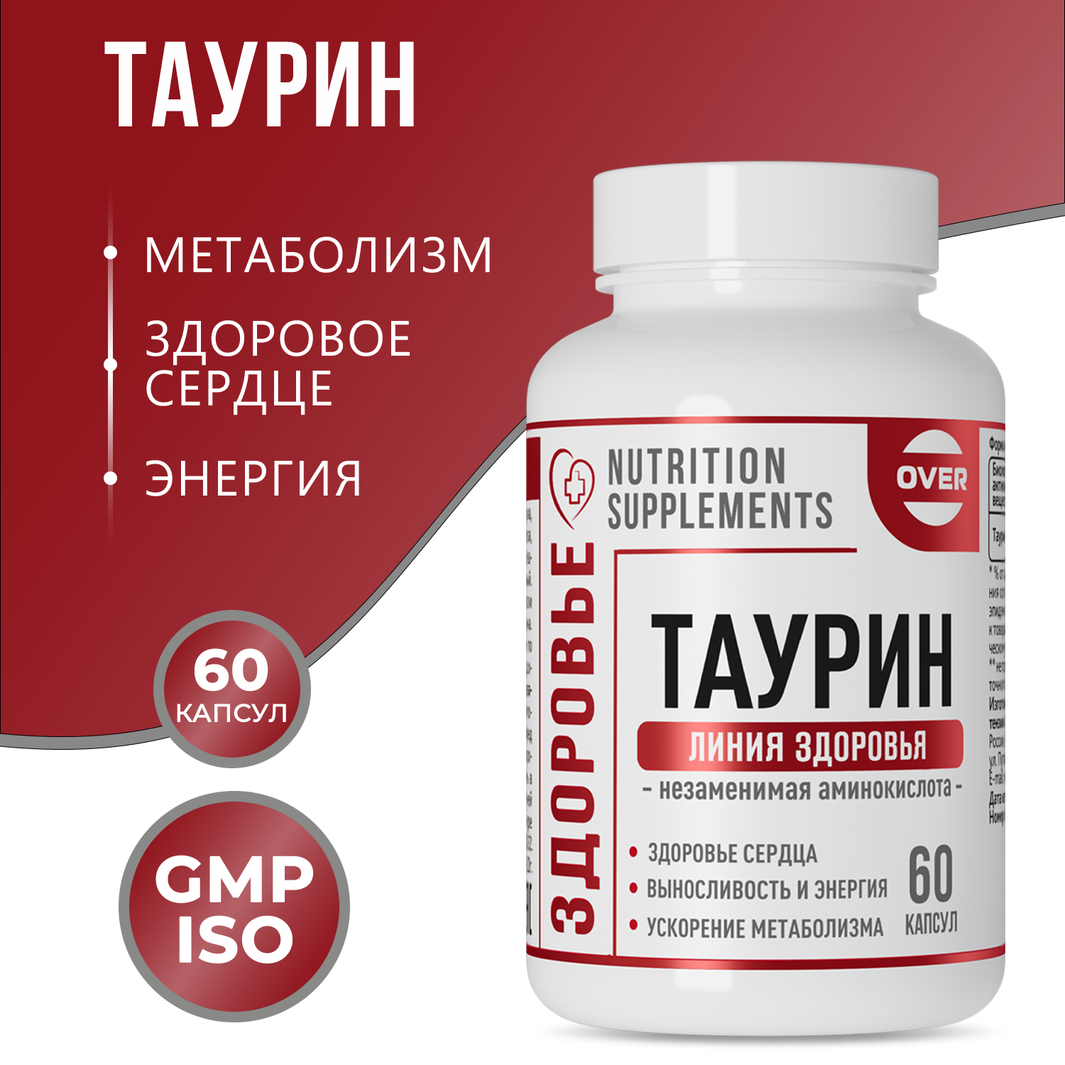 Таурин, аминокислота, спортивное питание, для выносливости и энергии, 60 капсул информация:
