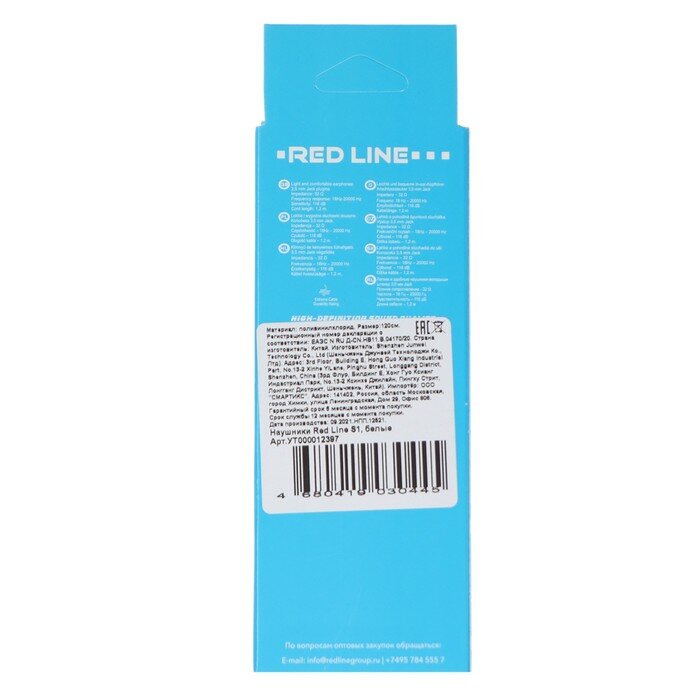 Наушники Red Line S1, вакуумные, 116 дБ, 32 Ом, 3.5 мм, 1.2 м, белые информация: