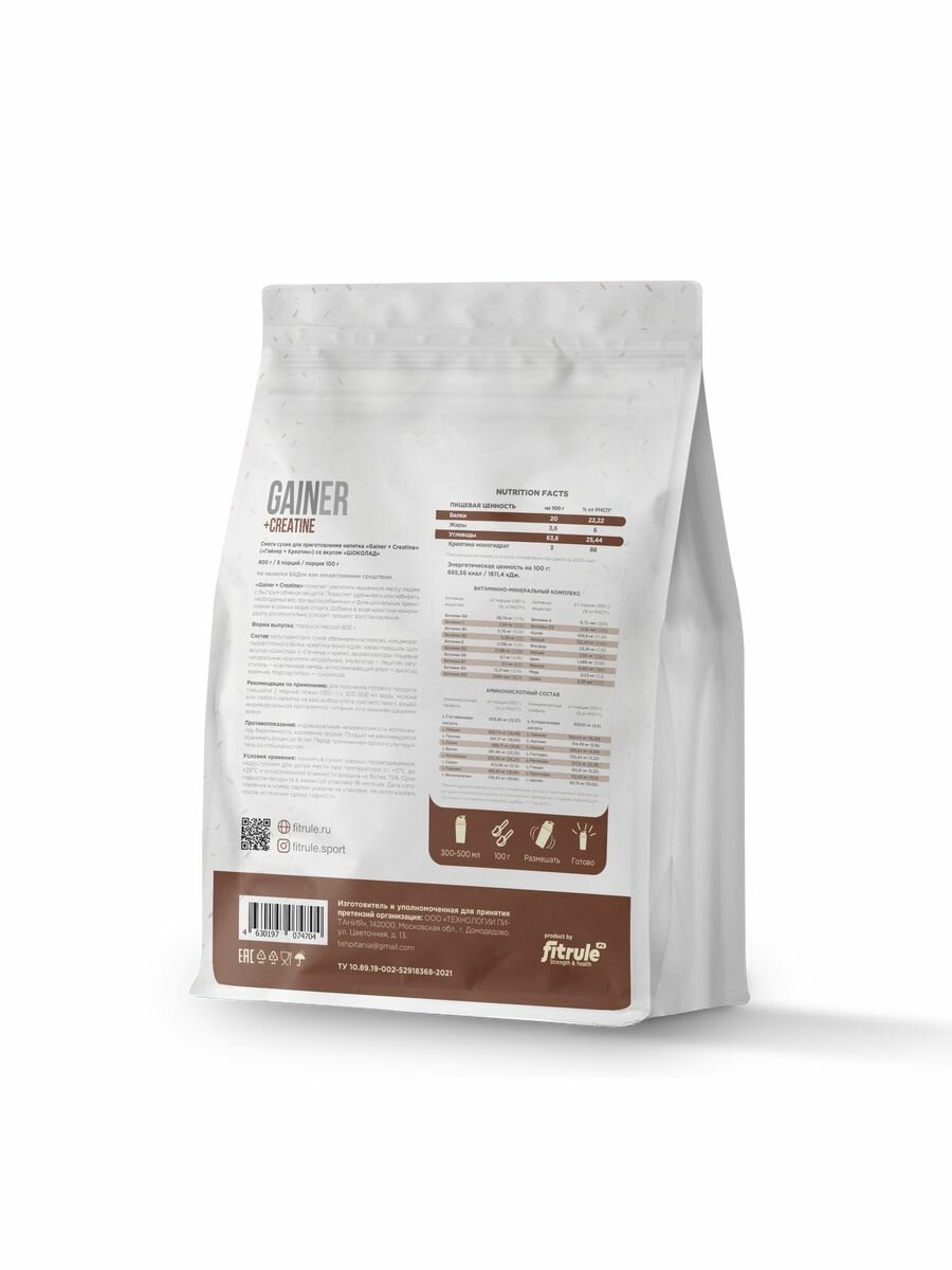 Fitrule Gainer + Creatine 800 гр, шоколад информация: