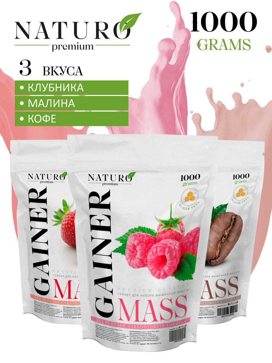 Набор гейнера от NATURO Premium из 3-ёх вкусов клубника, малина, кофе информация: