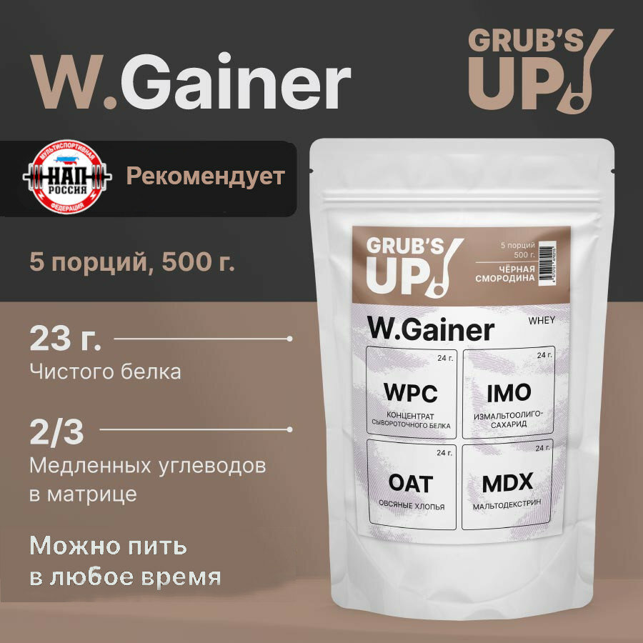 10 цен на Белково-углеводный коктейль (гейнер) Grub's up! W.Gainer черная смородина 500гр