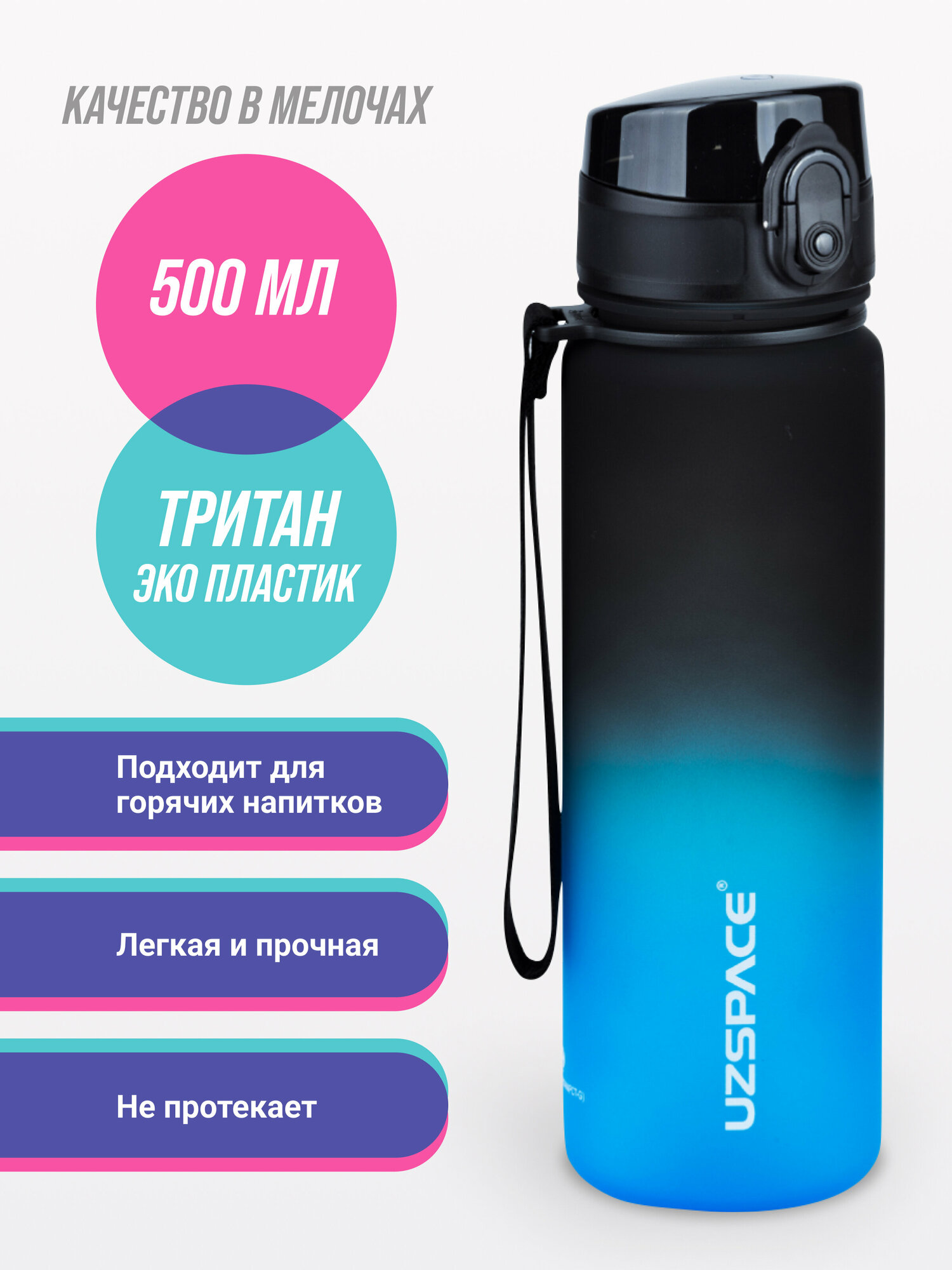 Бутылка для воды спортивная из Тритана UZSPACE 500 мл черно-голубой информация: