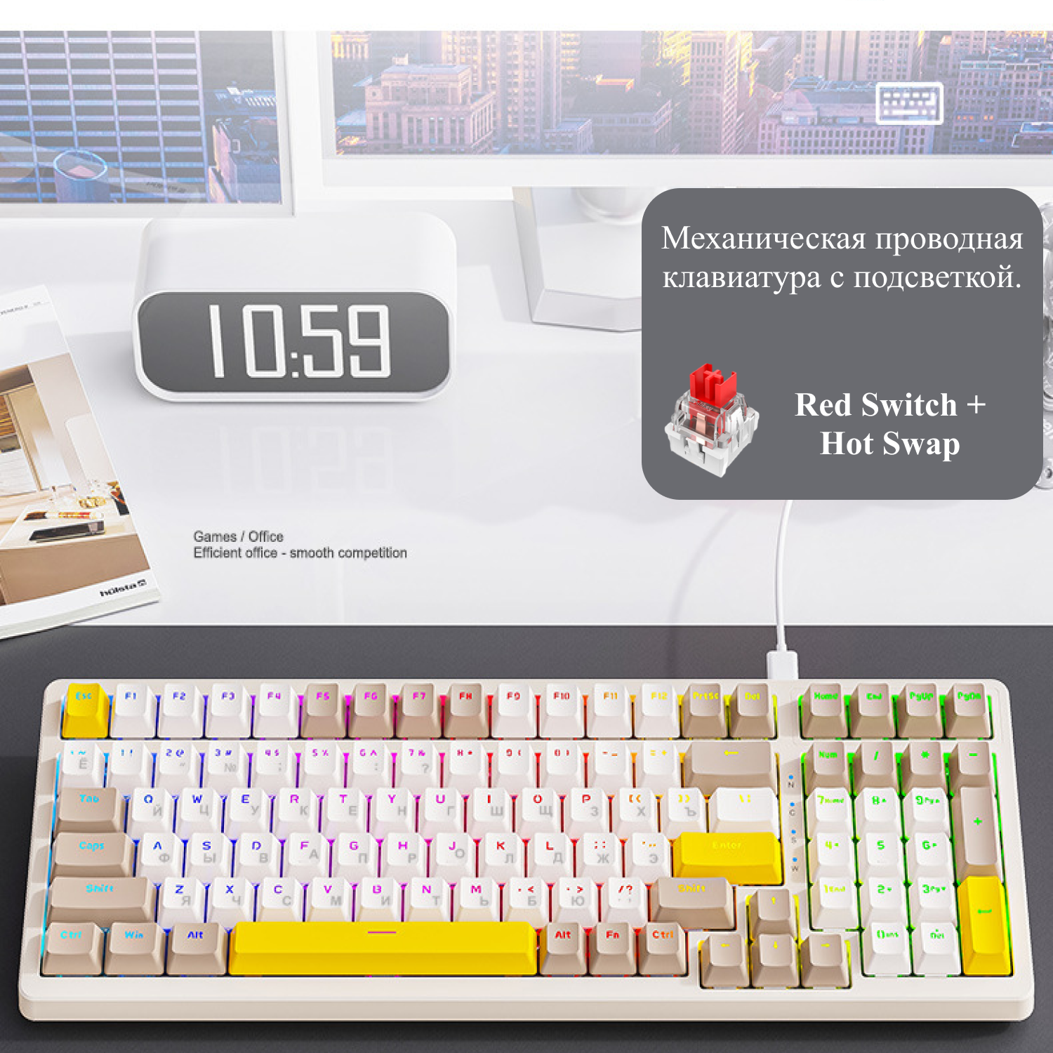 Игровая Механическая Клавиатура HKSJ V800, Blue Switch, RGB с подсветкой, с приятным звуком