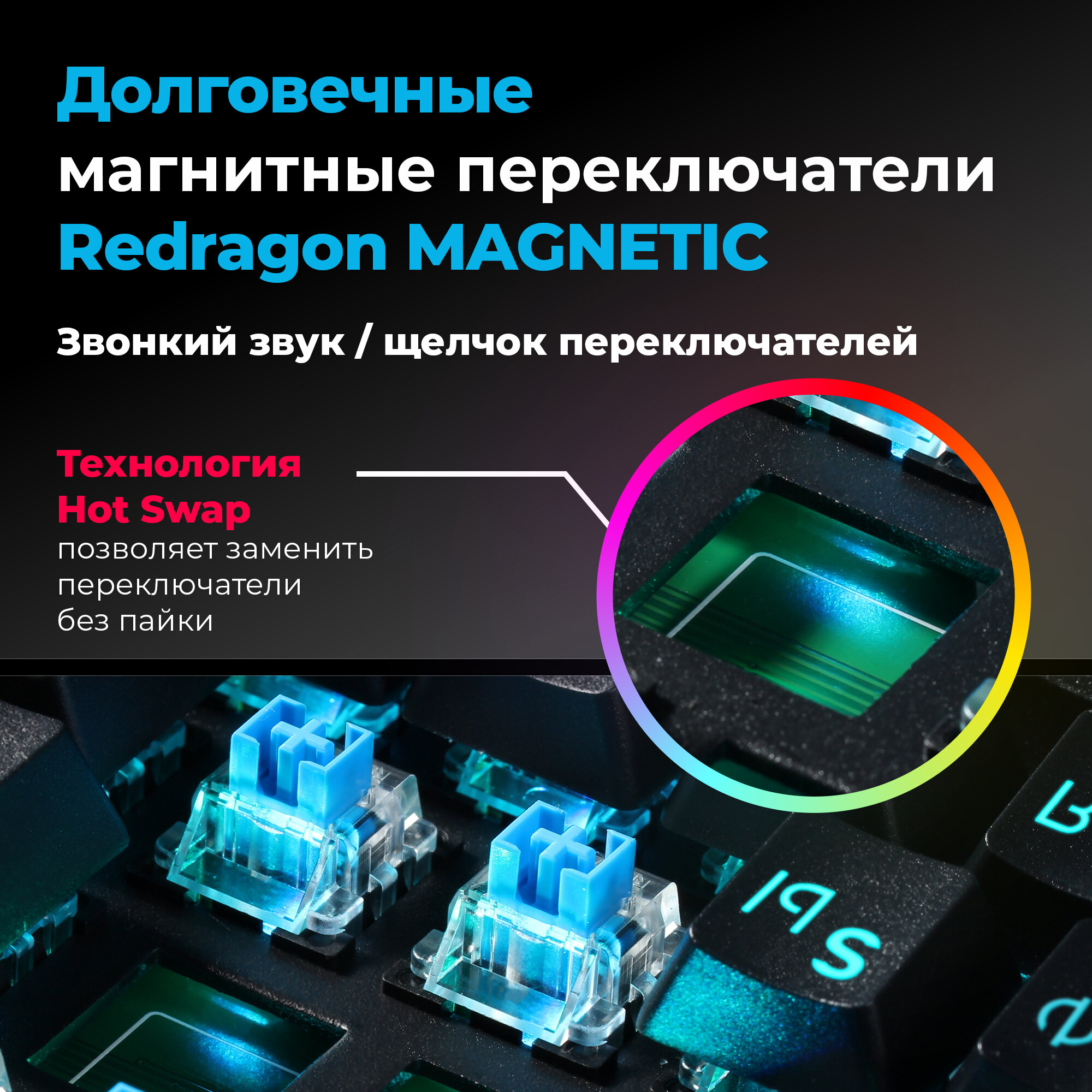 Игровая механическая клавиатура Redragon Anubis Outemu Tea тонкая, беспроводная с RGB подсветкой