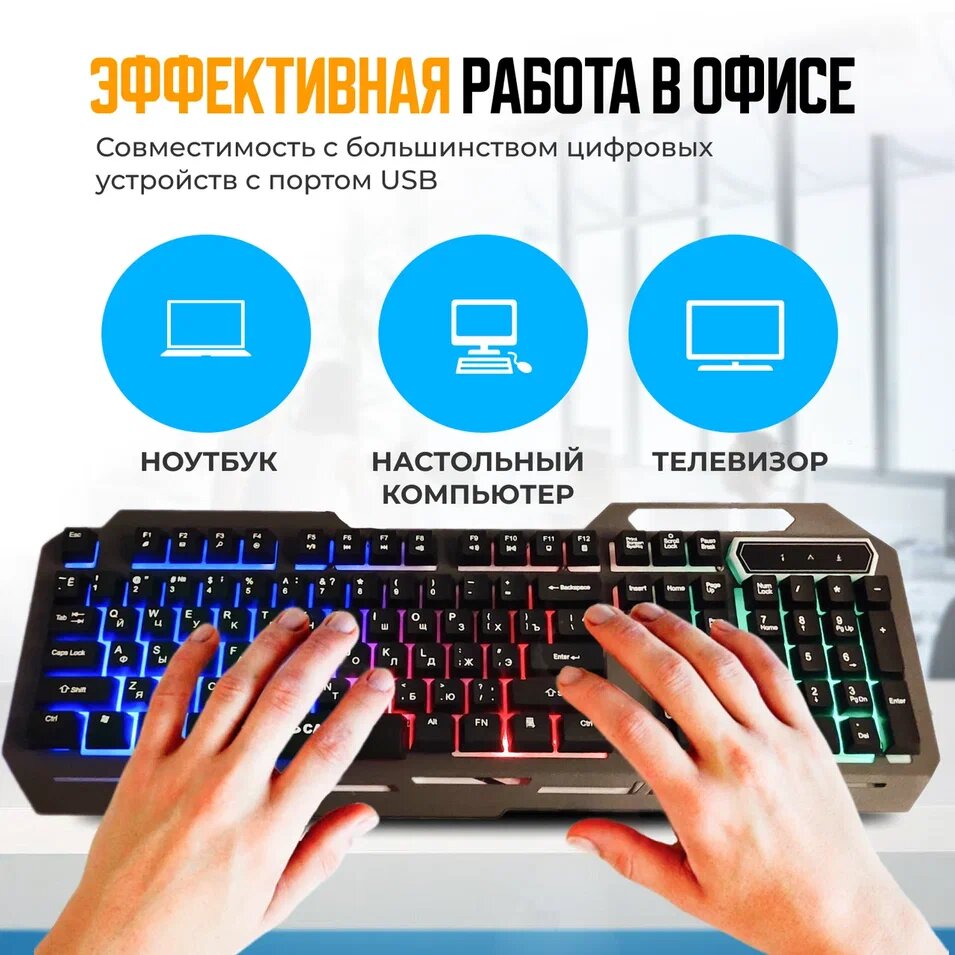 Клавиатура беспроводная с подсветкой Wolf M87 мембранная блютуз для компьютера ноутбука телефона русская английская игровая game gaming пк usb