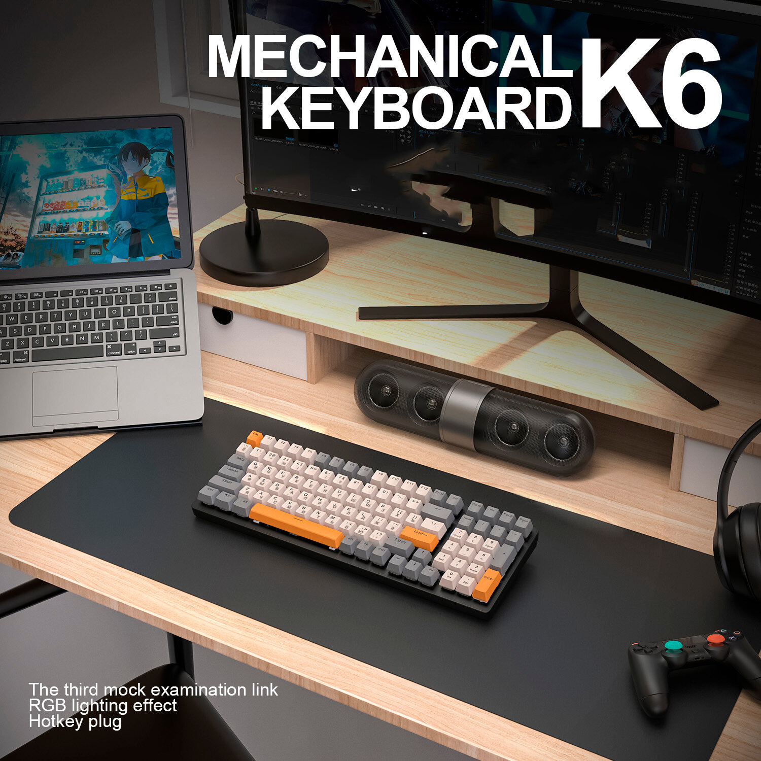 10 цен на Игровая RGB беспроводная механическая клавиатура K6 Bluetooth, Серый/Оранжевый