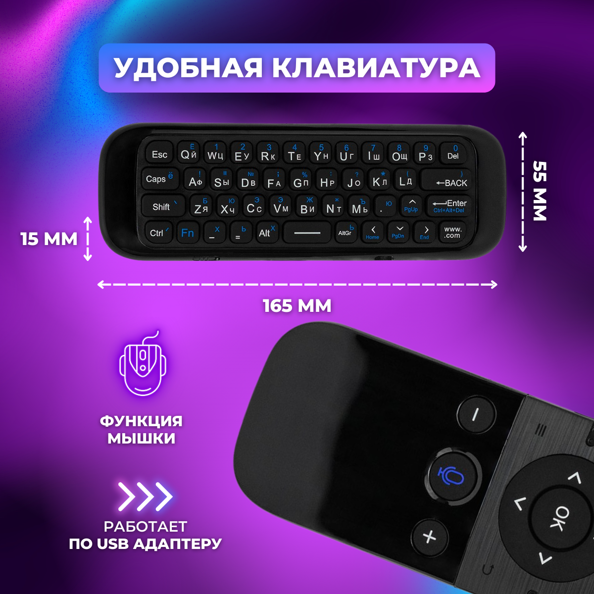 Клавиатура беспроводная (BC-810) пульт/ мышь/ указка для телевизора, Smart TV приставки и ПК информация: