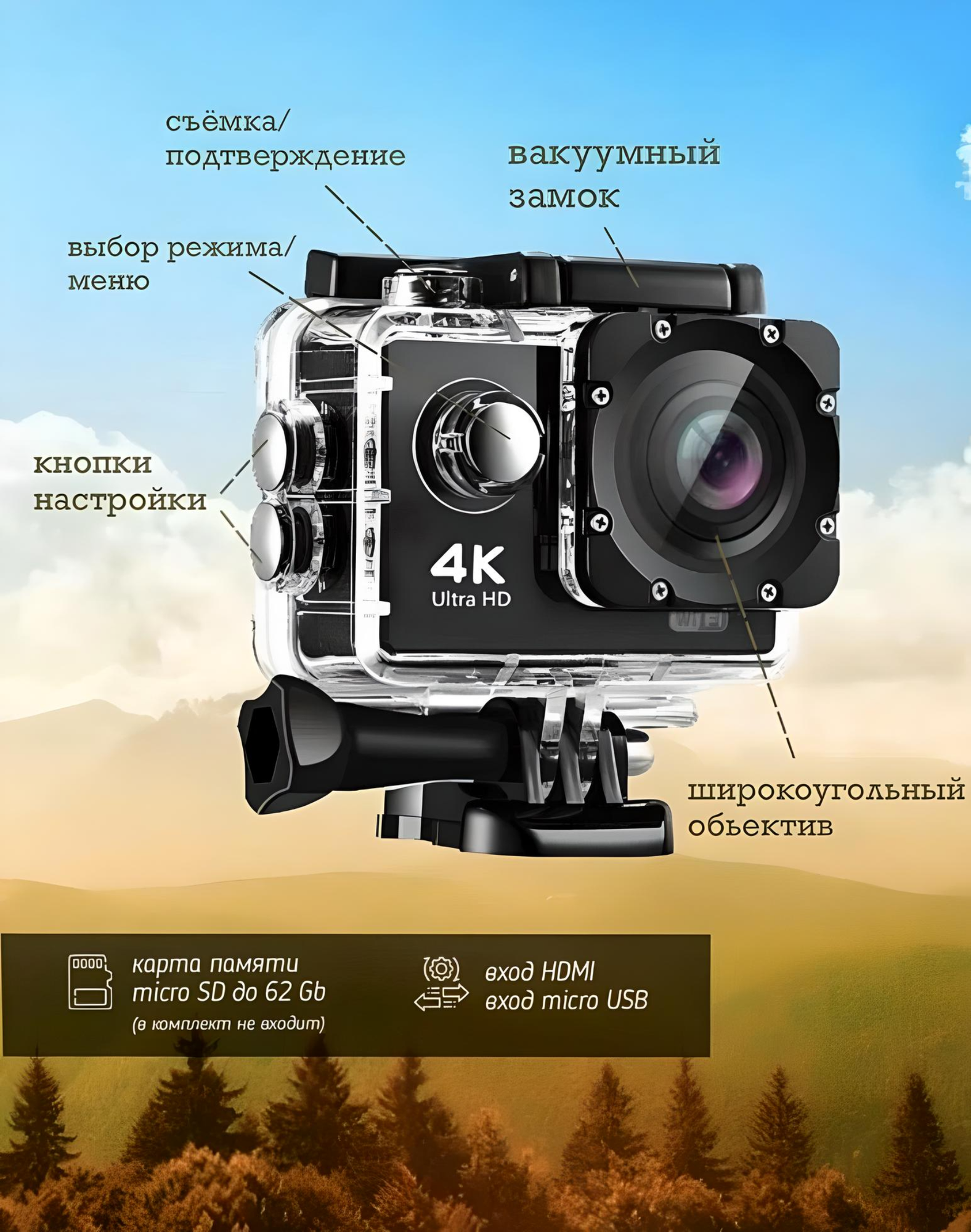 Экшн-камера видеорегистратор 2 в 1 4K Ultra HD DV c Wi Fi информация: