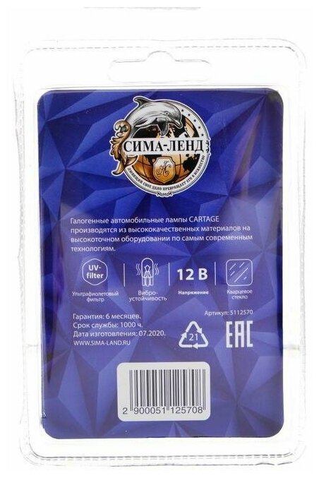 Галогенная лампа Cartage P21/5W, BAY15d, 12 В, набор 2 шт информация: