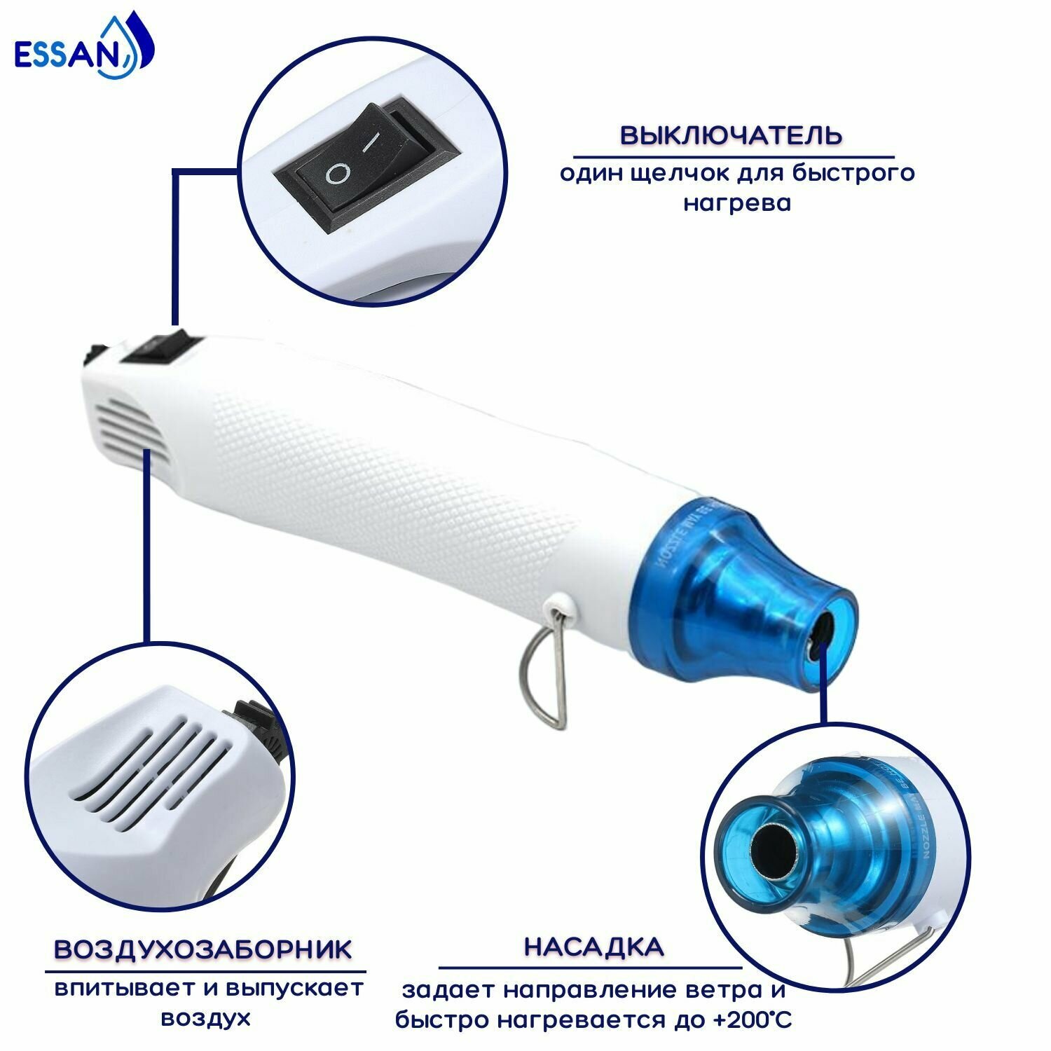 10 цен на Мини паяльный фен термофен для термоусадки ESSAN 230V. 50-60Hz. 300W. Белый