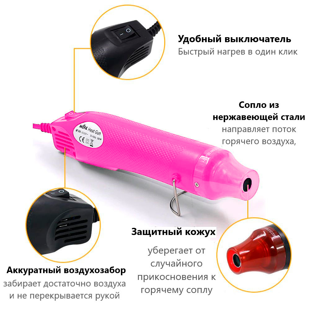 Фен розовый для термоусадки, эмбоссинга от бренда Wallard информация: