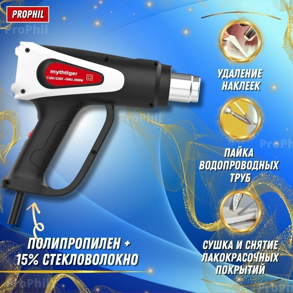 10 цен на Фен строительный (термовоздуходувка) с насадками