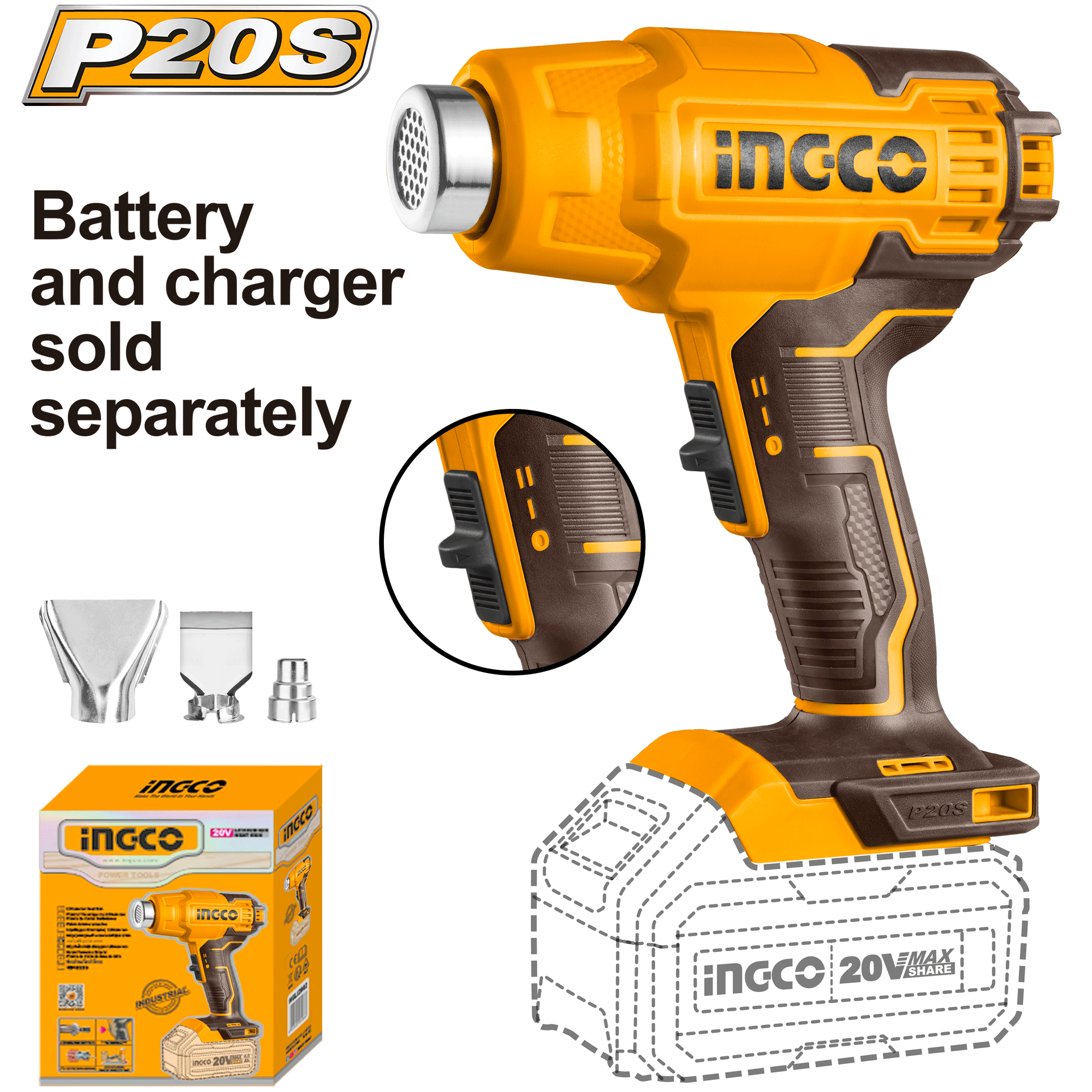 Фен аккумуляторный INGCO HGLI2002 INDUSTRIAL 20 В информация: