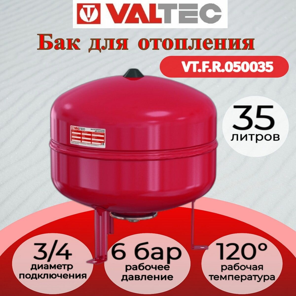 Расширительный бак для отопления Valtec 35л, 3/4", красный VT. F. R.050035