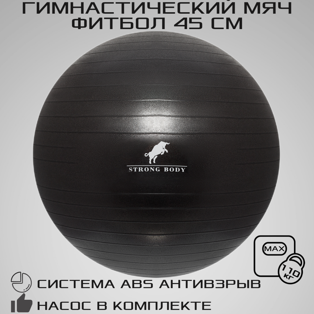 Фитбол 45 см ABS антивзрыв STRONG BODY, черный, насос в комплекте (гимнастический мяч для фитнеса) информация: