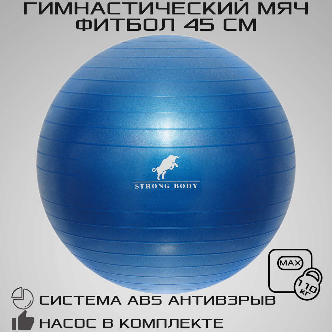 Фитбол 45 см ABS антивзрыв STRONG BODY, синий, насос в комплекте (гимнастический мяч для фитнеса) информация: