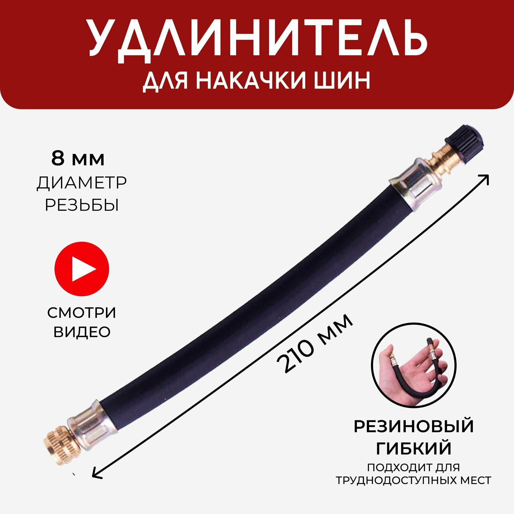 Шланг для накачки шин с резьбой 8мм 21см Насадка для компрессора, для автомобильного насоса информация:
