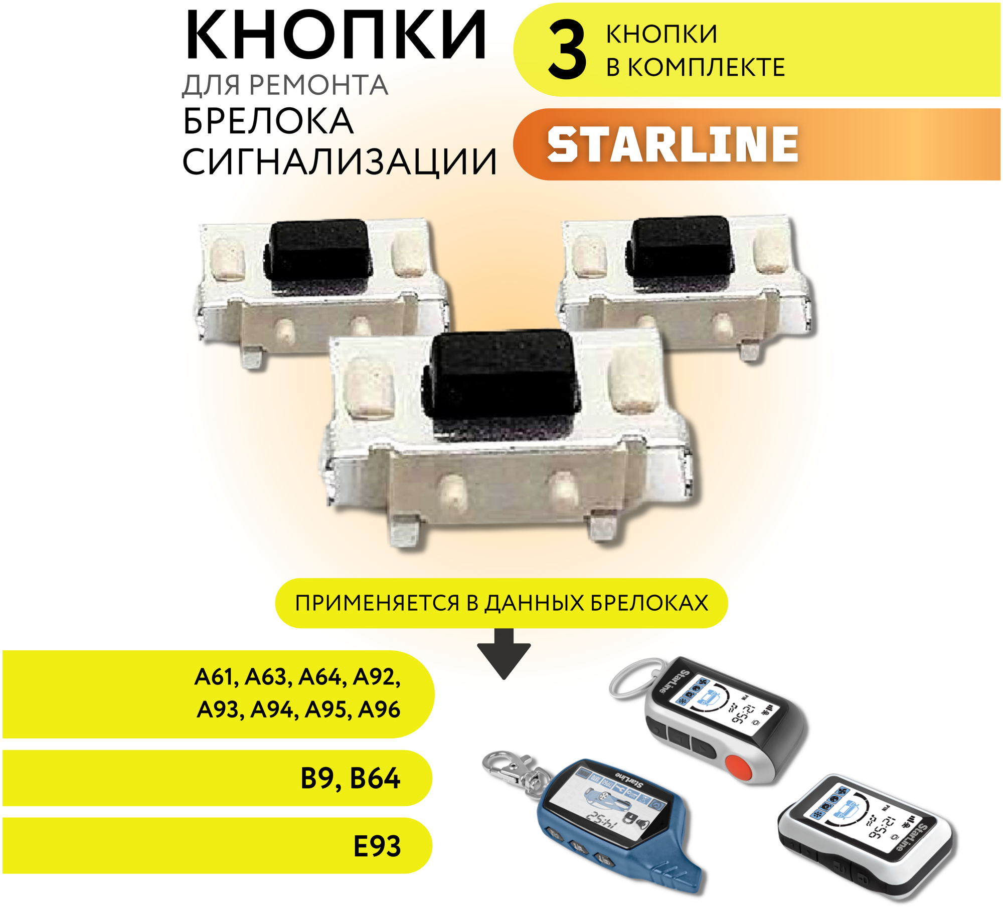 Отзывы на Кнопка для ремонта брелока сигнализации STARLINE, кнопка для брелока сигнализации Старлайн, 3 шт
