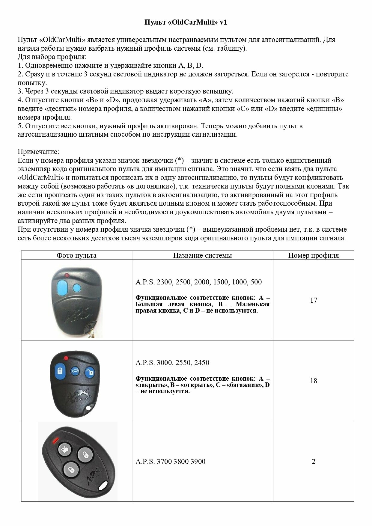 Брелок OldCarMulti v1 для автосигнализаций информация: