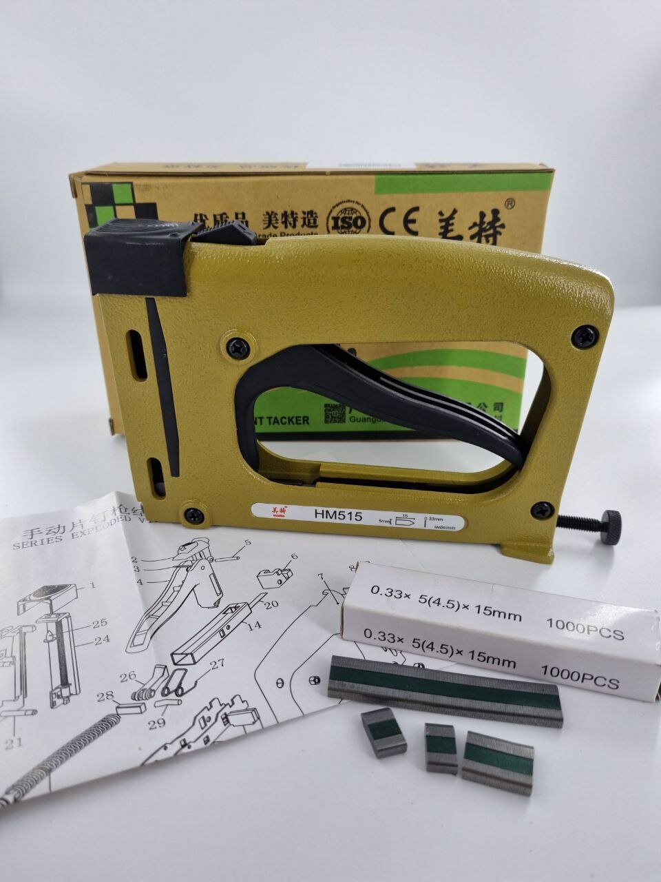 Пистолет для ламелей ручной. Модель HM515. В комплекте ламели 0,33*5(4,5)*15 мм 1000 шт. информация:
