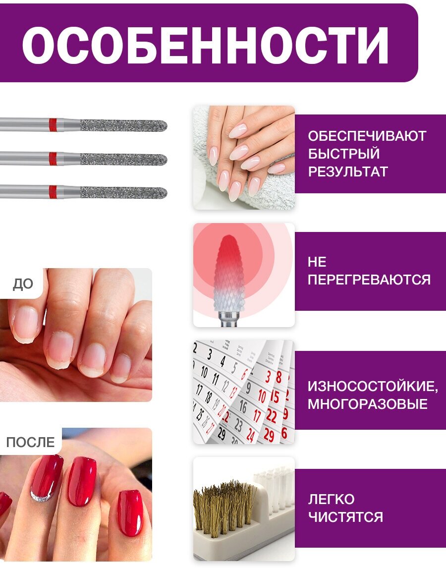 Отзывы на Фрезы алмазные для маникюра и педикюра цилиндр 3шт 2,5мм набор для профессионального маникюрного аппарата, дизайна, полировки ногтей, кожи и кутикулы