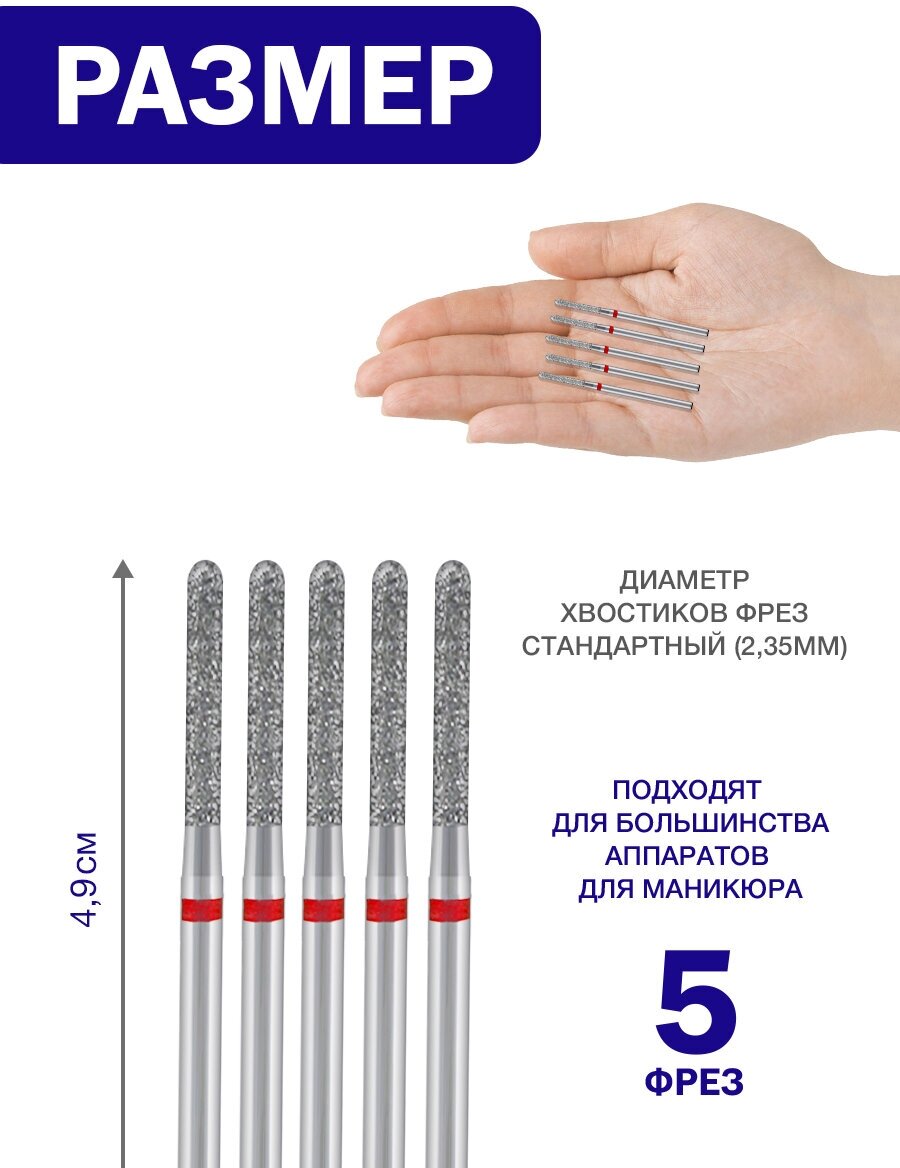 Фрезы алмазные для маникюра и педикюра цилиндр 5шт 2,5мм набор для профессионального маникюрного аппарата, дизайна, полировки ногтей, кожи и кутикулы информация: