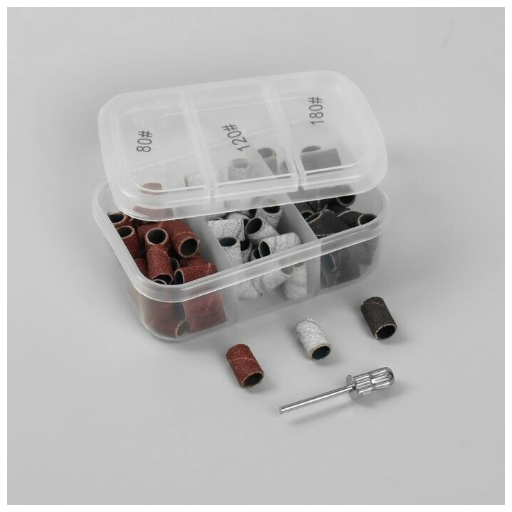 10 цен на Набор для аппаратного педикюра, основа, колпачки 75 шт, абразивность 80/120/180, в футляре
