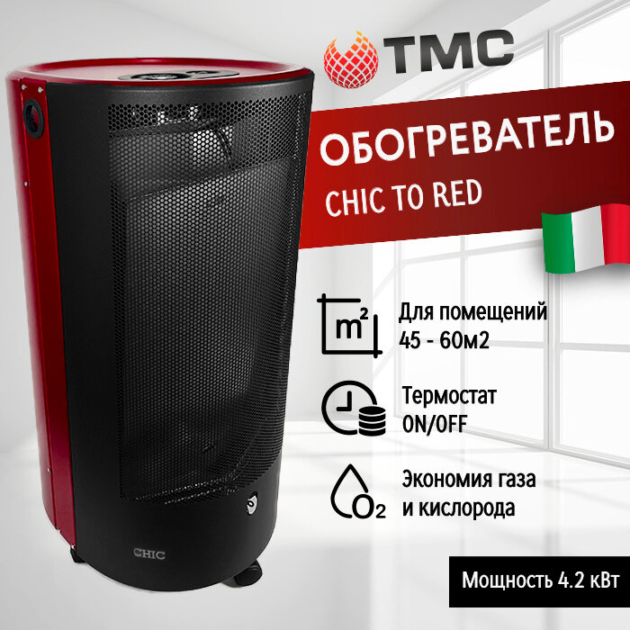 Газовый обогреватель каминного типа ТМС BLUE BELLE CHIC TO 4,2 кВт c термостатом ON/OFF c редуктором в комплекте (красный) информация:
