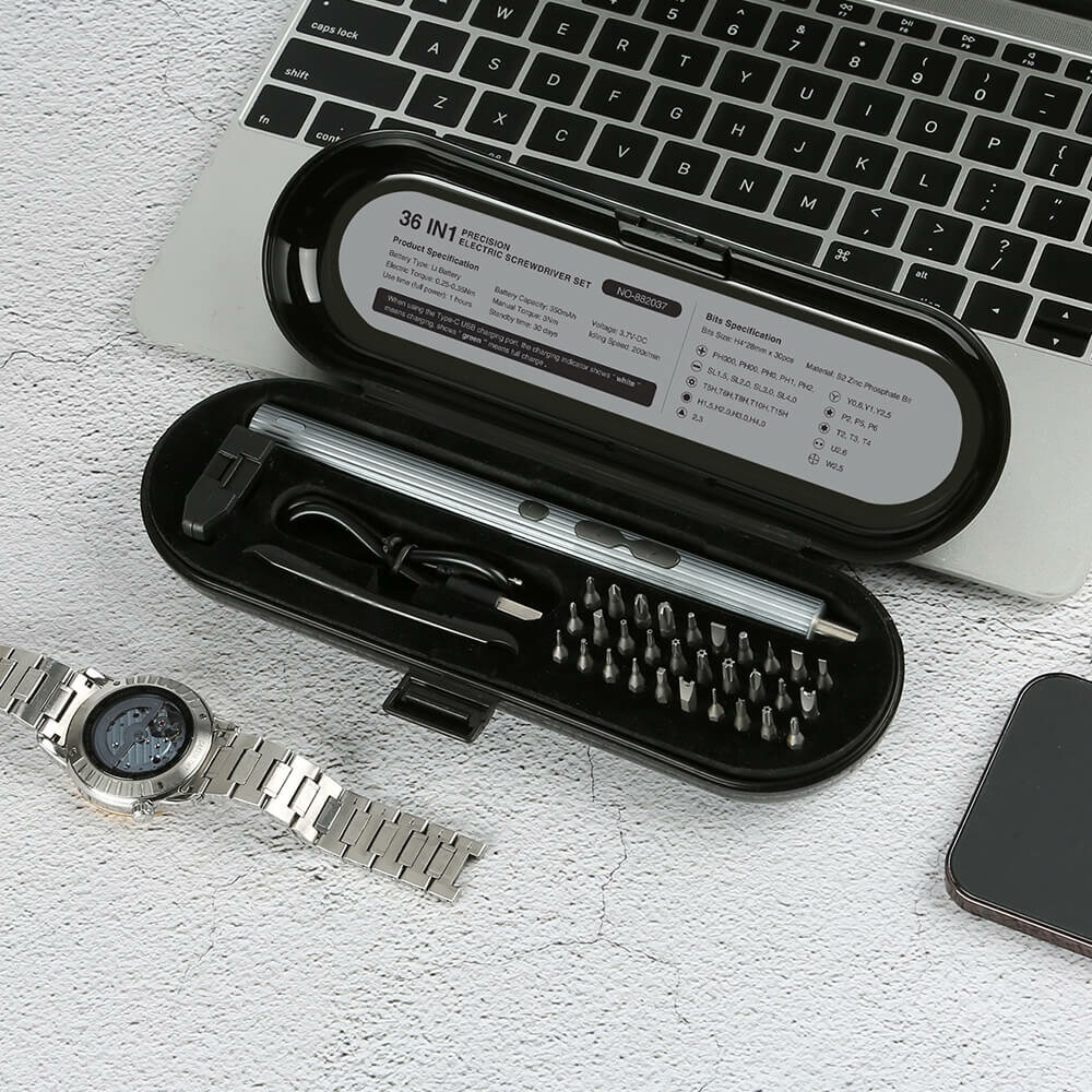 Аккумуляторная отвертка для точных работ, 36 предметов в наборе, пенал KS-882037 (stationery box) информация: