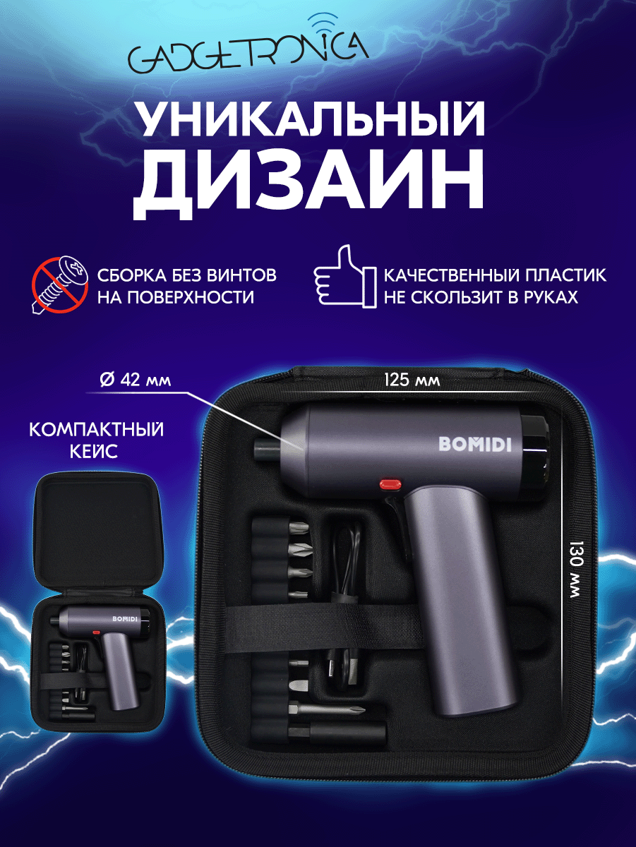 BOMIDI Аккумляторная отвертка пистолетного типа (EGS01) черный информация: