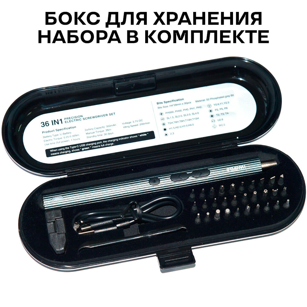 Отвертка аккумуляторная электрическая HANSFELD для очков, телефона iPhone и Android, ноутбука и других точных работ, с 30 битами информация: