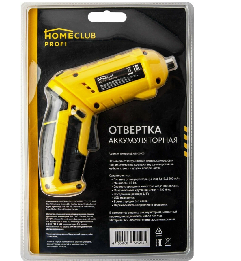 0 отзывов, средняя оценка 0. Чтобы купить «Отвертка HOMECLUB Profi аккумуляторная QD-CS003 с подсветкой» по лучшей цене мы сканируем авито, алиэкспресс, маркет, озон, савеловский, плеер, горбушку, беру, официальные сайты и находим минимальную. Администрация не несет ответсвенность актуальность цен на Отвертка HOMECLUB Profi аккумуляторная QD-CS003 с подсветкой, более подробно узнавайте на сайте магазина.