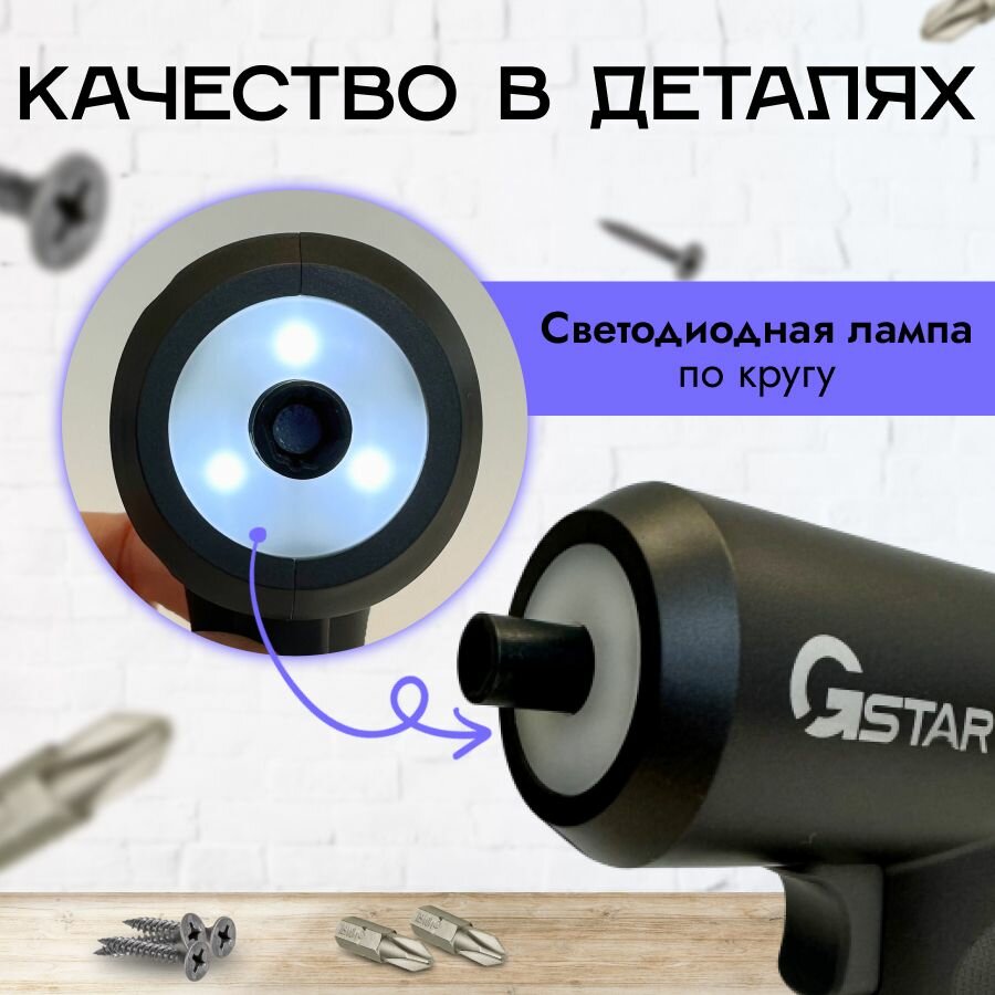Отвёртка электрическая беспроводная аккумуляторная серая GStar информация: